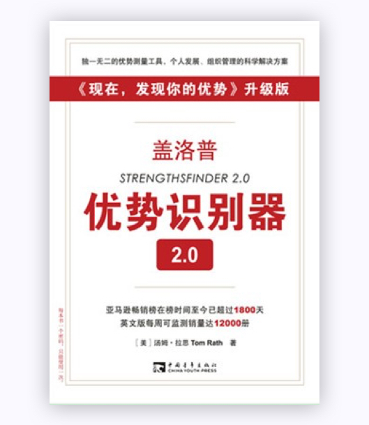 《蓋洛普優(yōu)勢(shì)識(shí)別器2.0》內(nèi)含優(yōu)勢(shì)識(shí)別器2.0測(cè)試密碼,僅可供一位讀者使用一次。測(cè)試完成后,系統(tǒng)會(huì)自動(dòng)生成測(cè)試報(bào)告——《優(yōu)勢(shì)識(shí)別和行動(dòng)計(jì)劃指南》,幫助讀者了解并發(fā)揮自身優(yōu)勢(shì)。